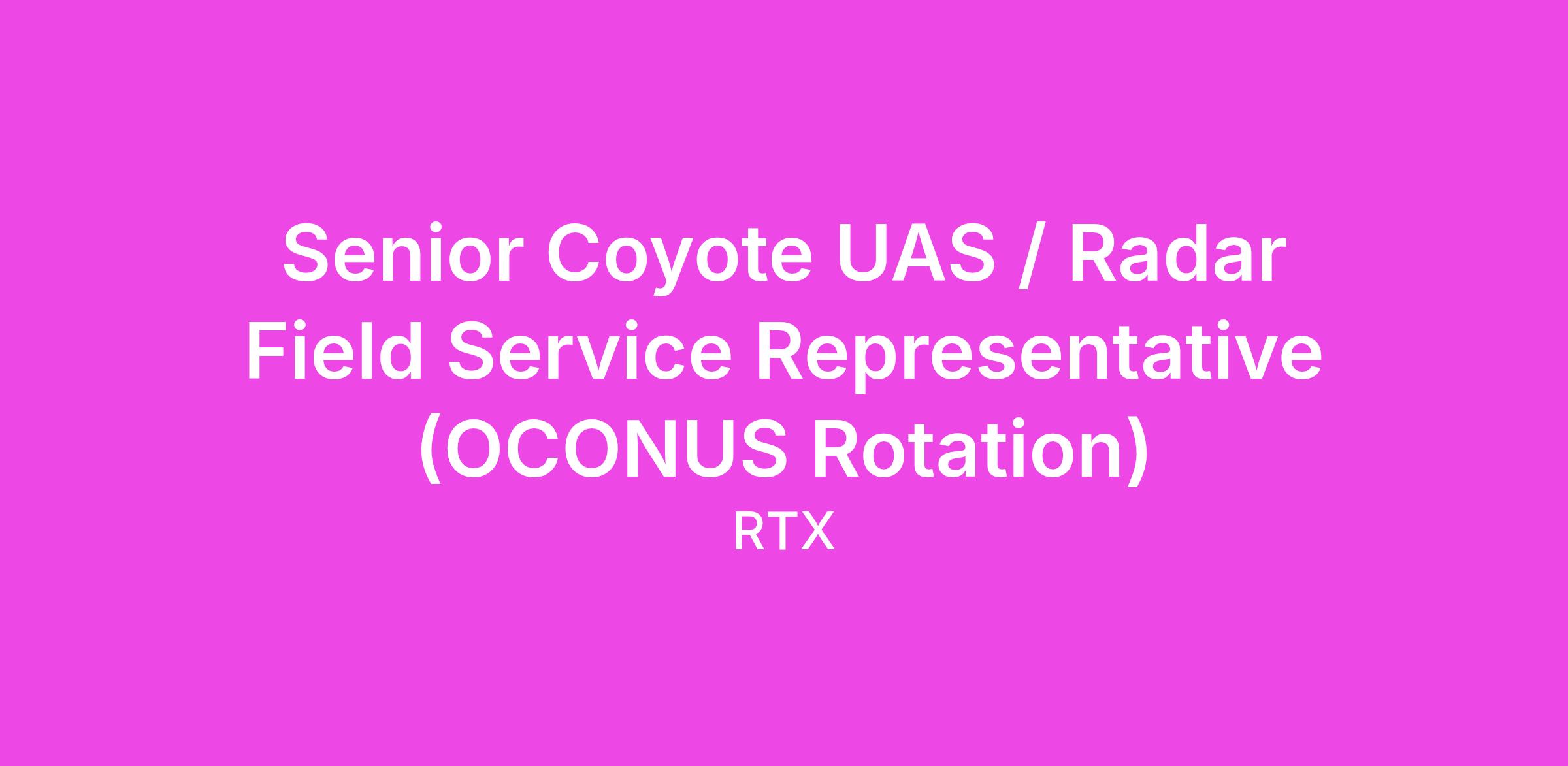 Raytheon's Field Engineering team is looking for a Senior Coyote UAS / Radar Field Technician to join our field MFRFS program team.