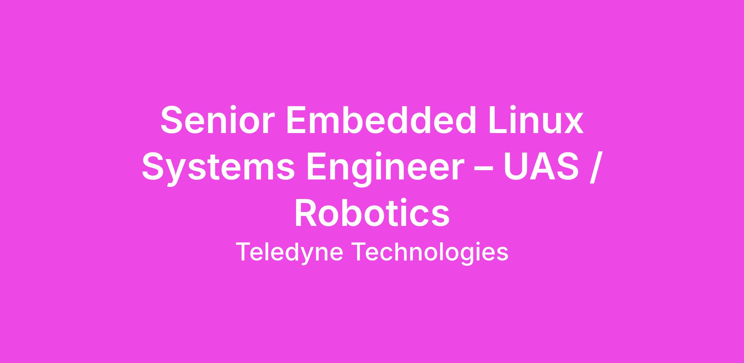 Senior Embedded Linux Systems Engineer – UAS / Robotics